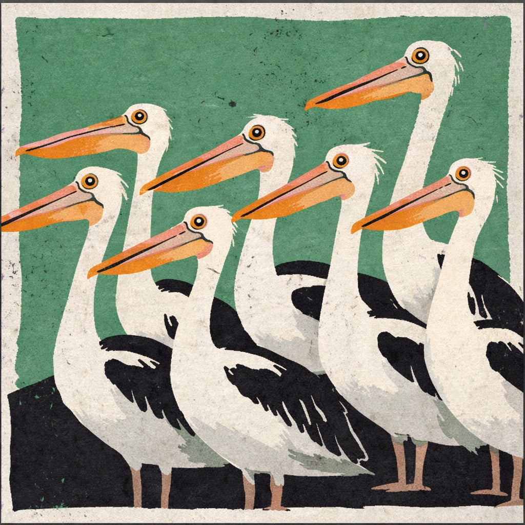 • Framed artwork of two cockatoos on a branch against a pink background, with a vase and branches in the foreground.